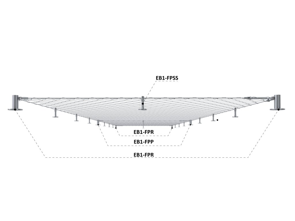 Set pre fasádnu lankovú stenu, rozmer: 1.8x10m, odsadenie od steny: 100mm, Nerez - kombinácia AISI 304 a 316. Obsahuje potrebné množstvo komponentov