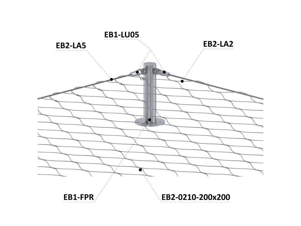 Set pre fasádnu lankovú stenu, rozmer: 1.8x10m, odsadenie od steny: 200mm, Nerez - kombinácia AISI 304 a 316. Obsahuje potrebné množstvo komponentov