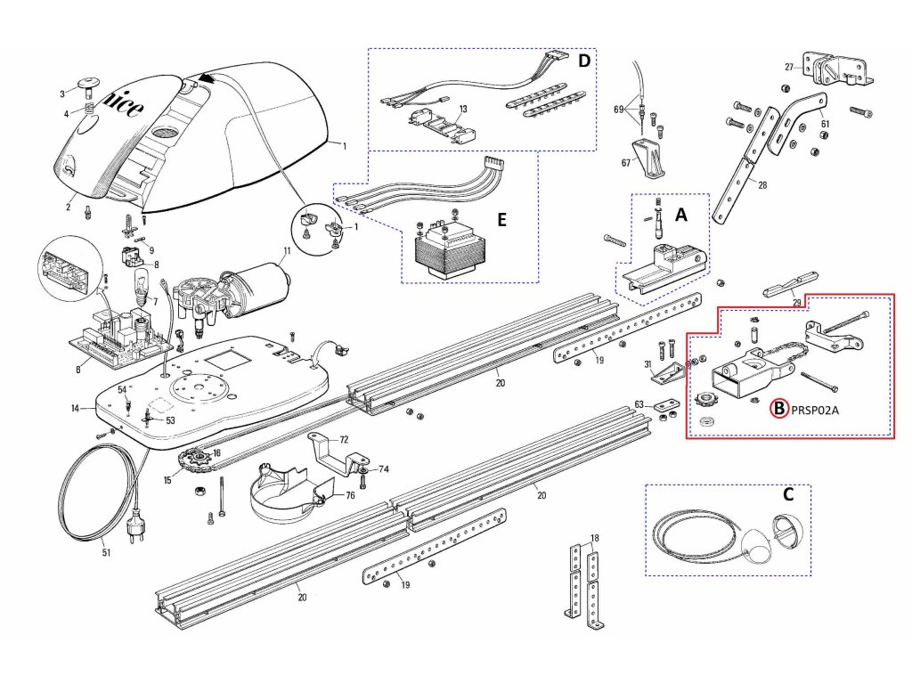 PRSP02A kit-koncový diel šíny pre SPIDO/SPIDER Presný rozpis náhradných dielov nájdete na stránke www.kovianportal.sk.
