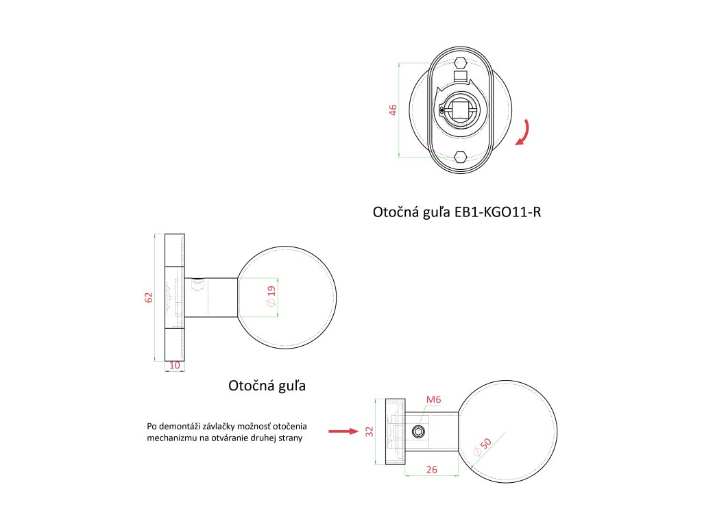 Guľa (P) s oválnou rozetou, otočná, brúsená AISI 304