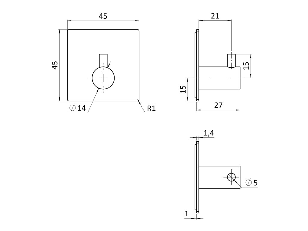 Nalepovací háčik s 3M páskou, brúsená nerez AISI 304