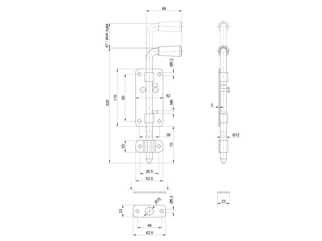 Rígeľ ø 12 mm, L = 220 mm, pozinkovaný s protikusom