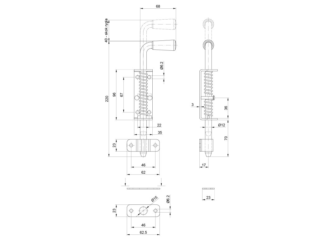 Rígeľ navárací ø 12 mm, L = 220 mm, pozinkovaný s pružinou