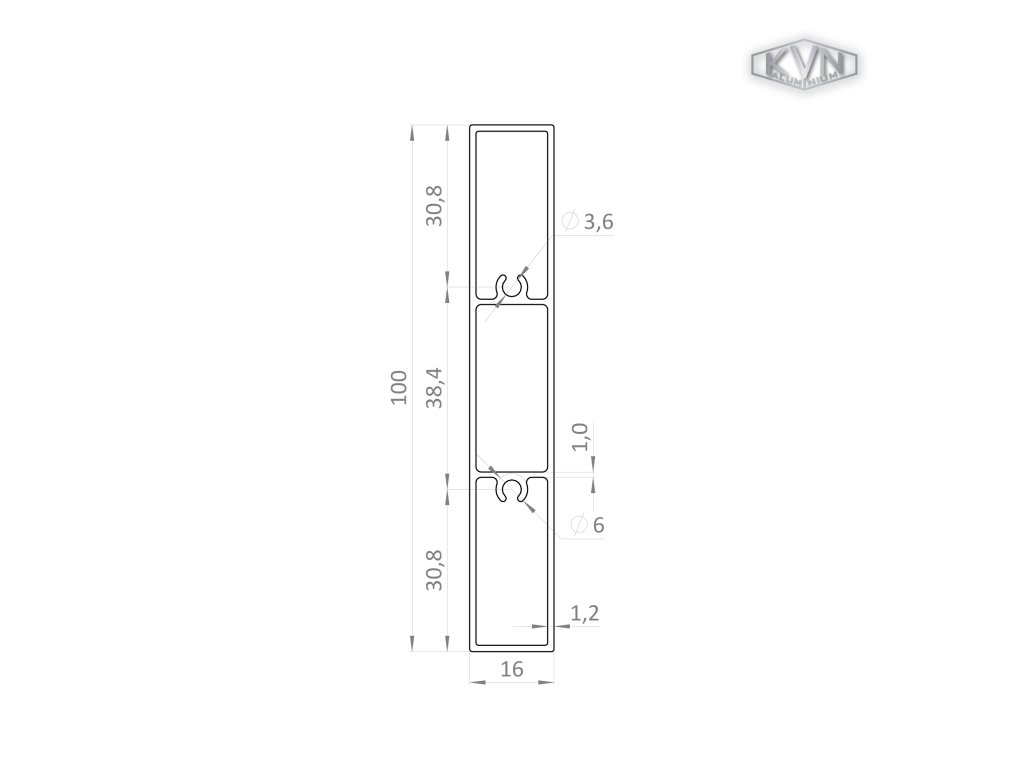Al profil 100 x 16 x 6000 mm, lak so štruktúrou RAL 7016