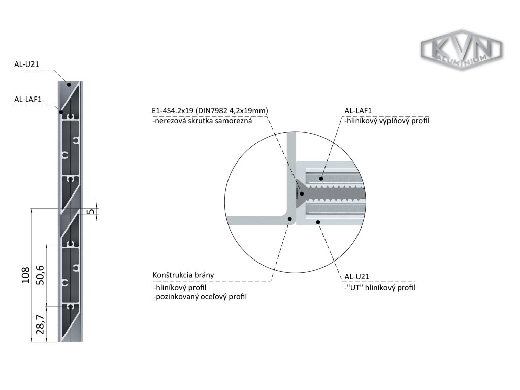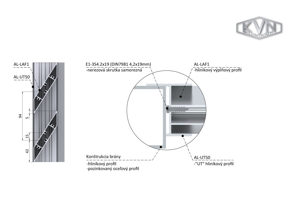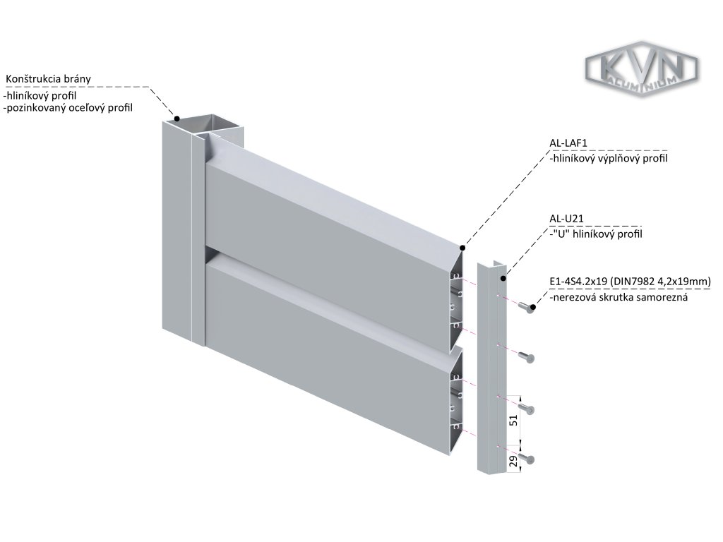 Hliníkové lamely sa vyznačujú mimoriadne nízkou hmotnosťou, výnimočnou odolnosťou materiálu voči koróziám či vplyvu počasia a dlhou životnosťou. Montáž našich lamiel výplne uľahčujú jednoduché U a UT profily s výrazne naznačenými vodiacimi čiarami, ktoré spoľahlivo zabezpečia požadované umiestnenie lamiel do poľa výplne. Vďaka nim si budete môcť namerať presné miesta úchytu skrutkami. Pre dokonalý spoj a odolnosť voči korózii odporúčame použiť nerezové samorezné skrutky z našej ponuky.