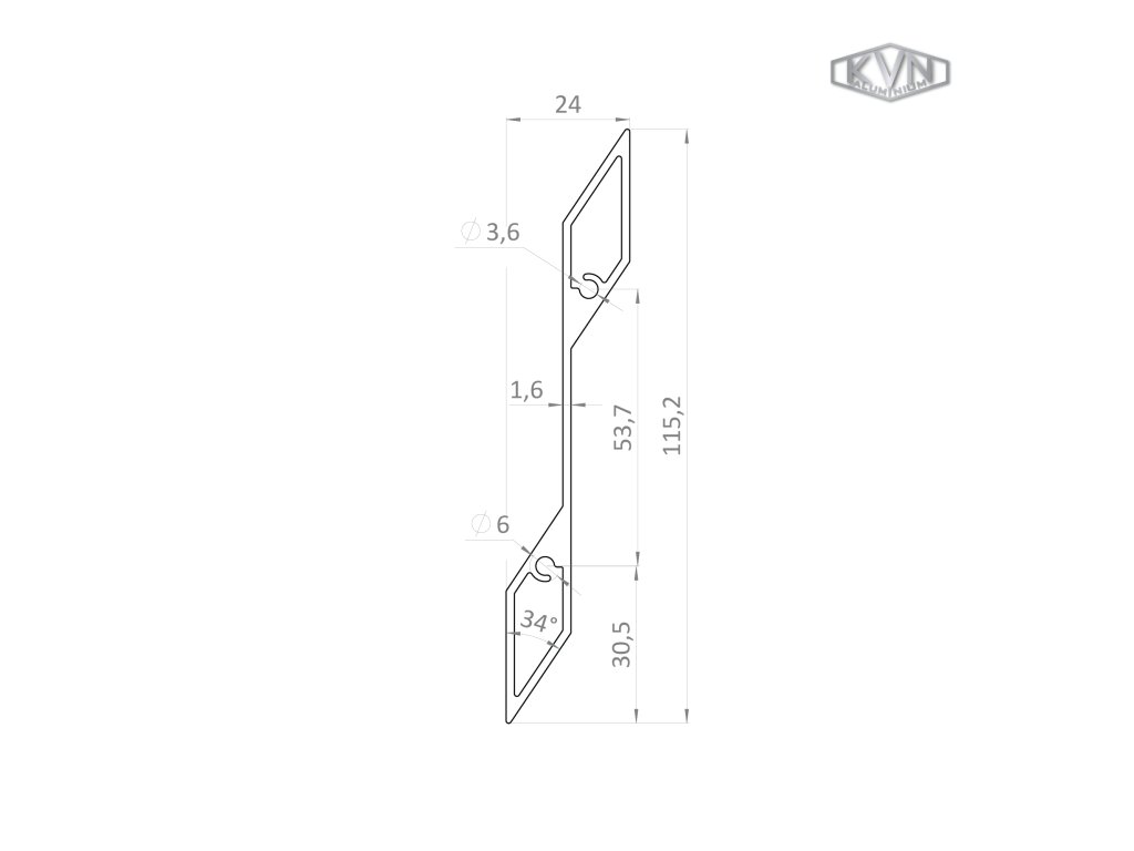 Poškodený Al profil 115,2 x 24 x 6000 mm, bez úpravy