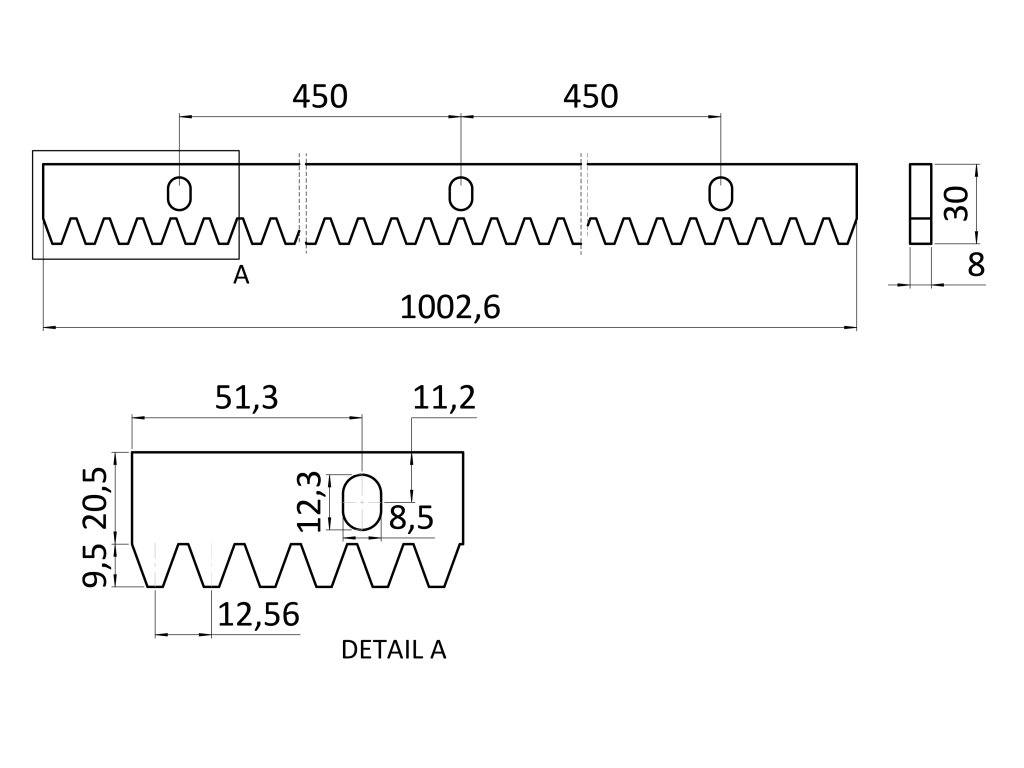 hrebeň kov 30x8mm, L-1000mm, M4, max do 1200kg, 3x úchyt+skrutky, pozinkovaný