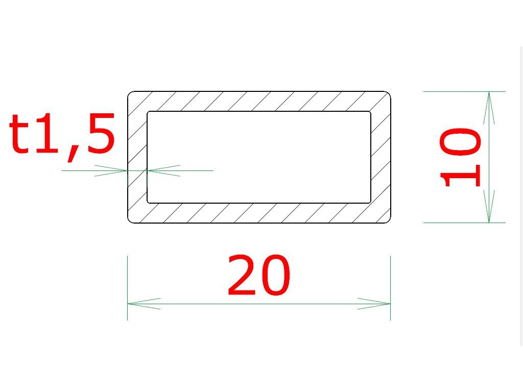 Profil 20 x 10 x 1,5 x 3000 mm, brúsená nerez AISI 304