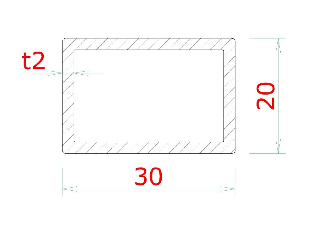 Profil 30 x 20 x 2 x 6000 mm, brúsená nerez AISI 304