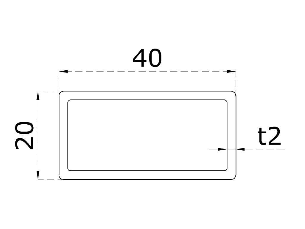 Profil 40 x 20 x 2 x 6000 mm, brúsená nerez AISI 304