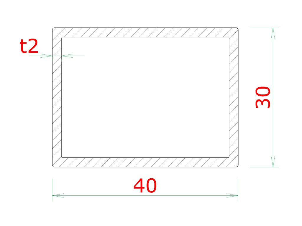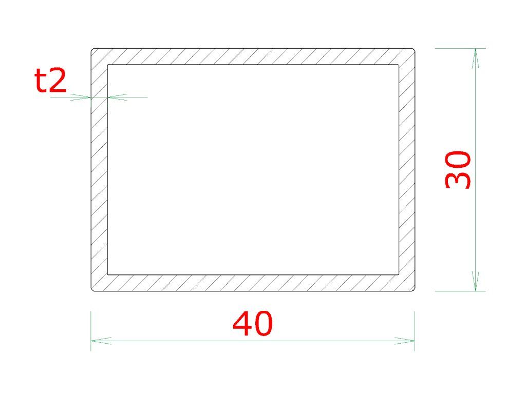 Profil 40 x 30 x 2 x 6000 mm, brúsená nerez AISI 304
