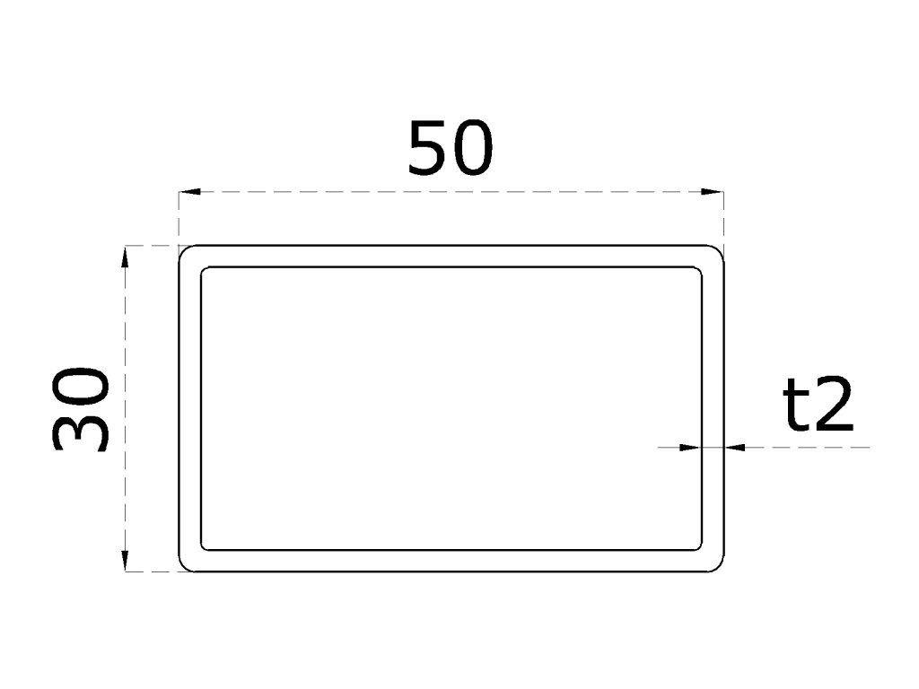 Profil 50 x 30 x 2 x 6000 mm, brúsená nerez AISI 304