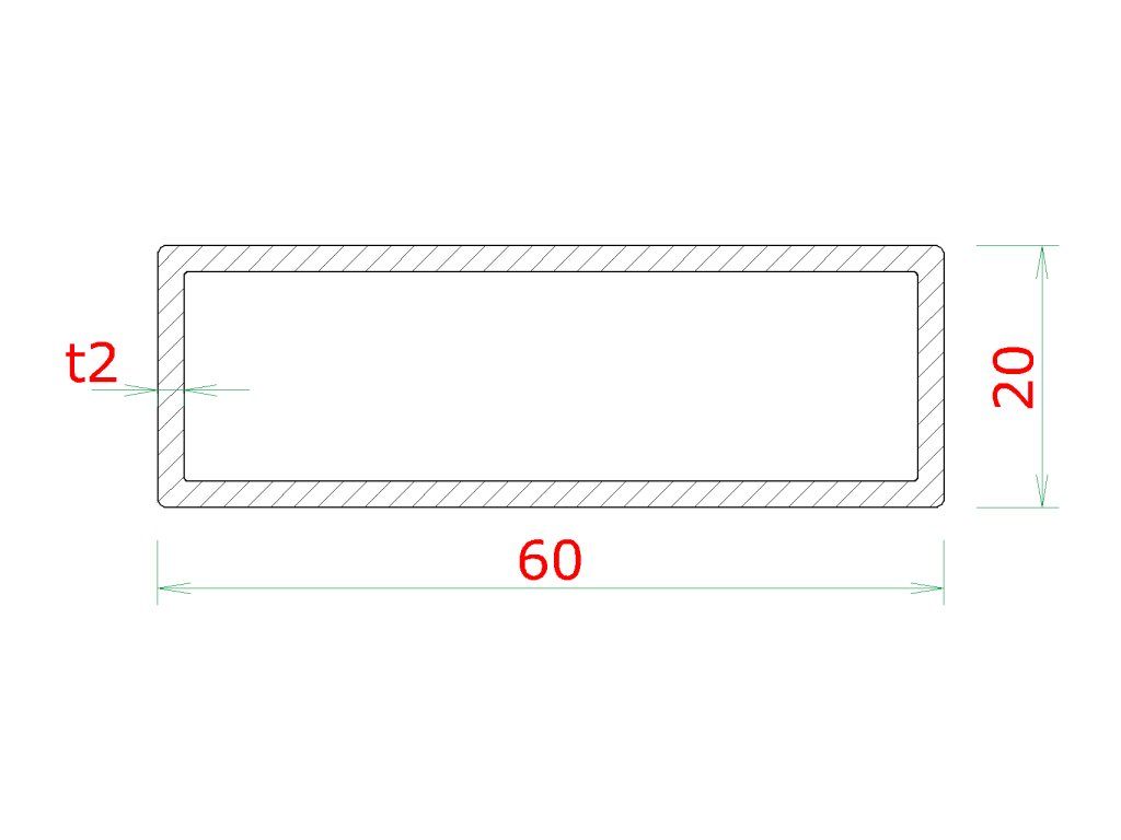 Profil 60 x 20 x 2 x 6000 mm, brúsená nerez AISI 304