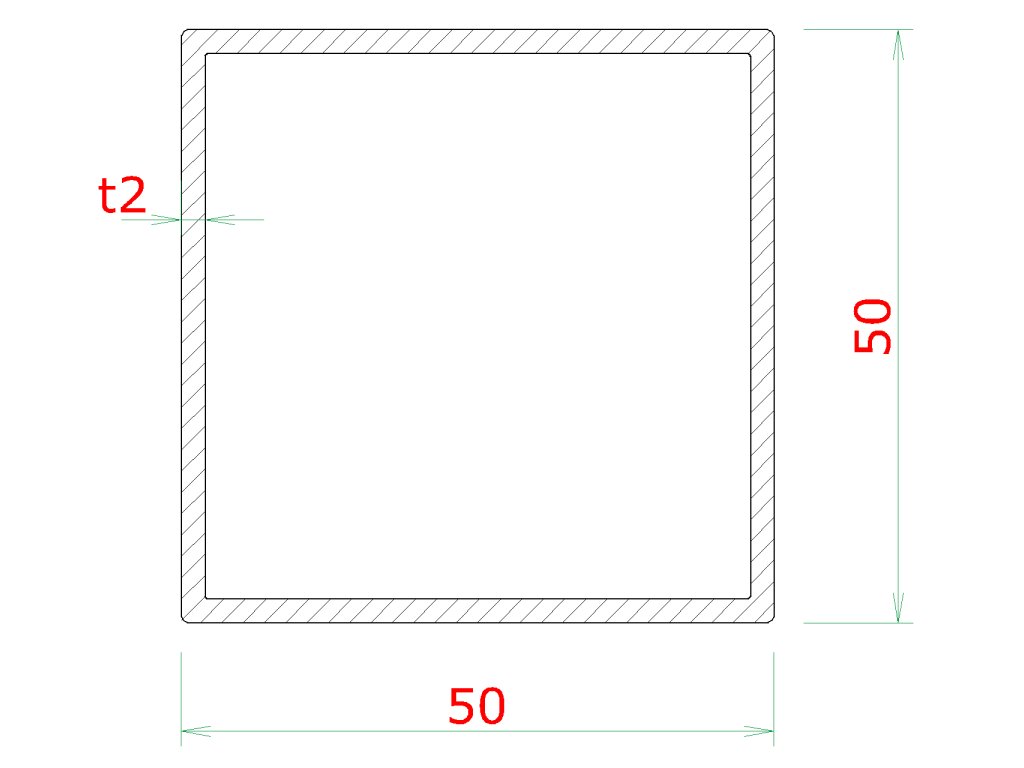 Profil 50 x 50 x 2 x 3000 mm, brúsená nerez AISI 304