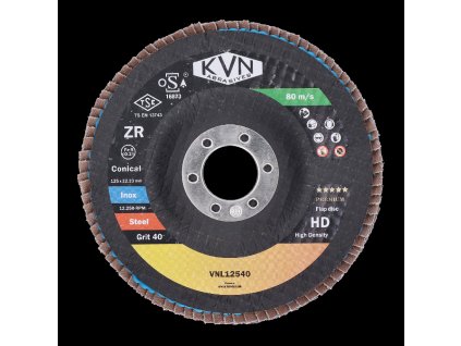 Prémiový lamelový kotúč na oceľ a nerez, 125mm, zrno 40, extra hrubý PREMIUM, 100% zirconia, kónický