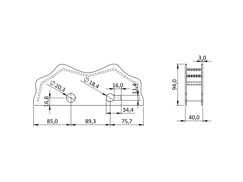 Kazetová zostava 250 x 95 x 40 mm, otvor ø 19,5 mm