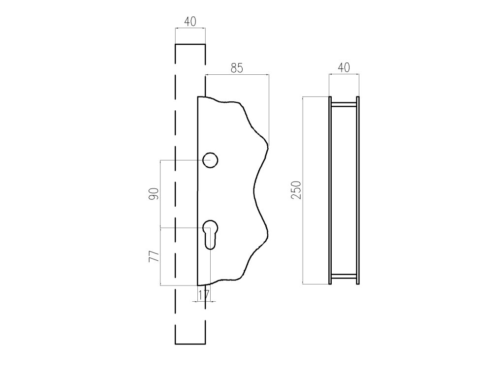 Kazetová zostava pre bránku 250x95x40mm, otvor pre kľučku ø 19,5mm, na profil 40x40mm, hladká, pre zámok ZM90/80