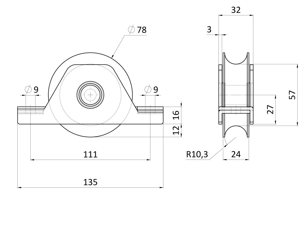 Vodiaca kladka ø 78 mm s nylonovým kolieskom, AISI 304