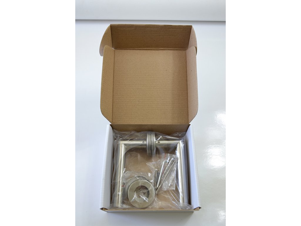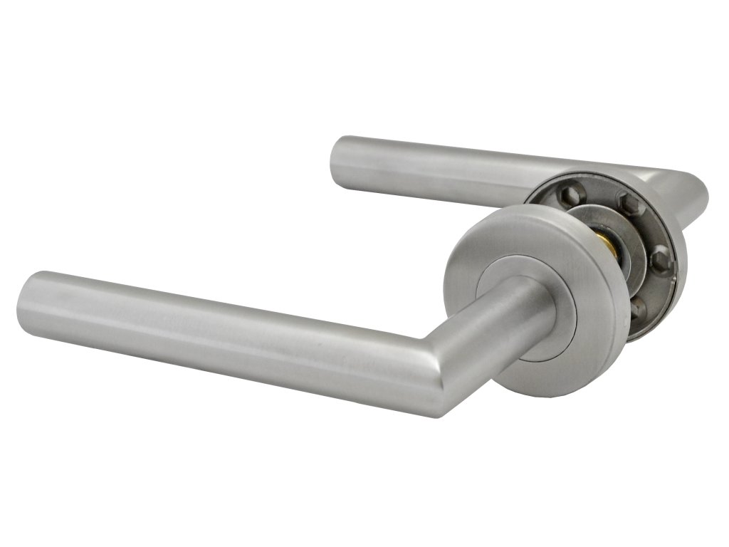 Kľučka nerezová (pár) bez dolnej rozety, balenie: 2ks kľučka + príslušenstvo k montáži, brúsená nerez K320 /AISI304, spodná časť rozety nerez