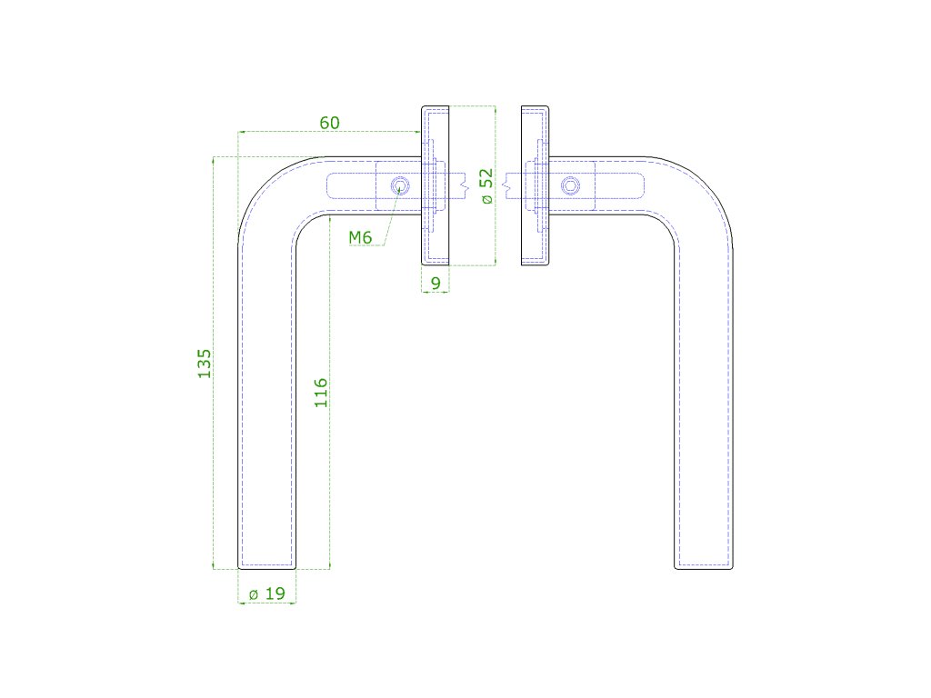 kľučka nerezová (pár) bez dolnej rozety, balenie: 2ks kľučka + príslušenstvo k montáži, brúsená nerez K320 /AISI304, spodná časť rozety pozink