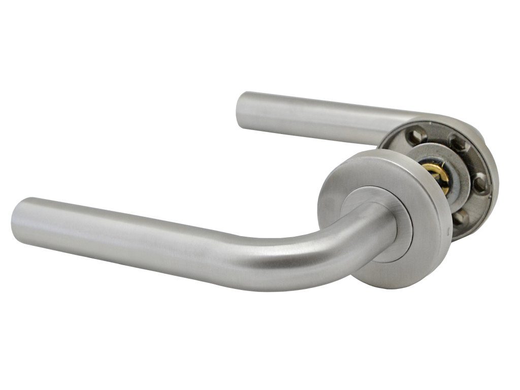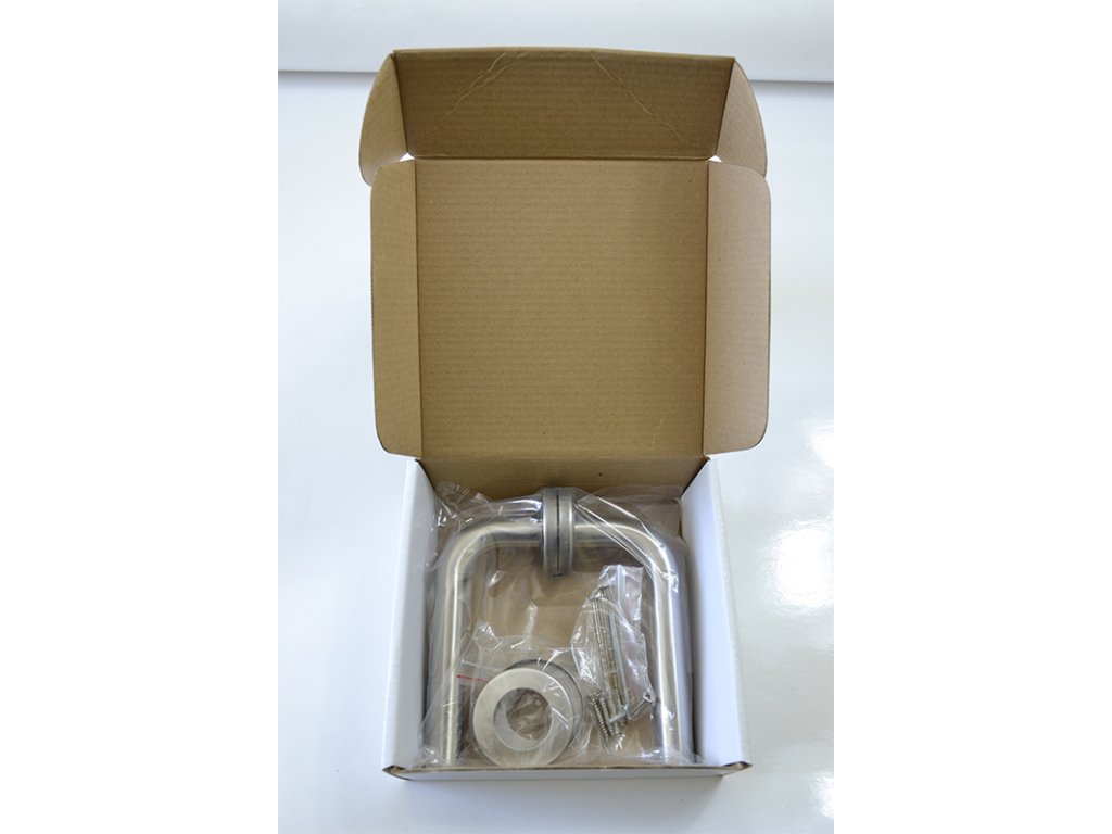 kľučka nerezová (pár) bez dolnej rozety, balenie: 2ks kľučka + príslušenstvo k montáži, brúsená nerez K320 /AISI304, spodná časť rozety pozink