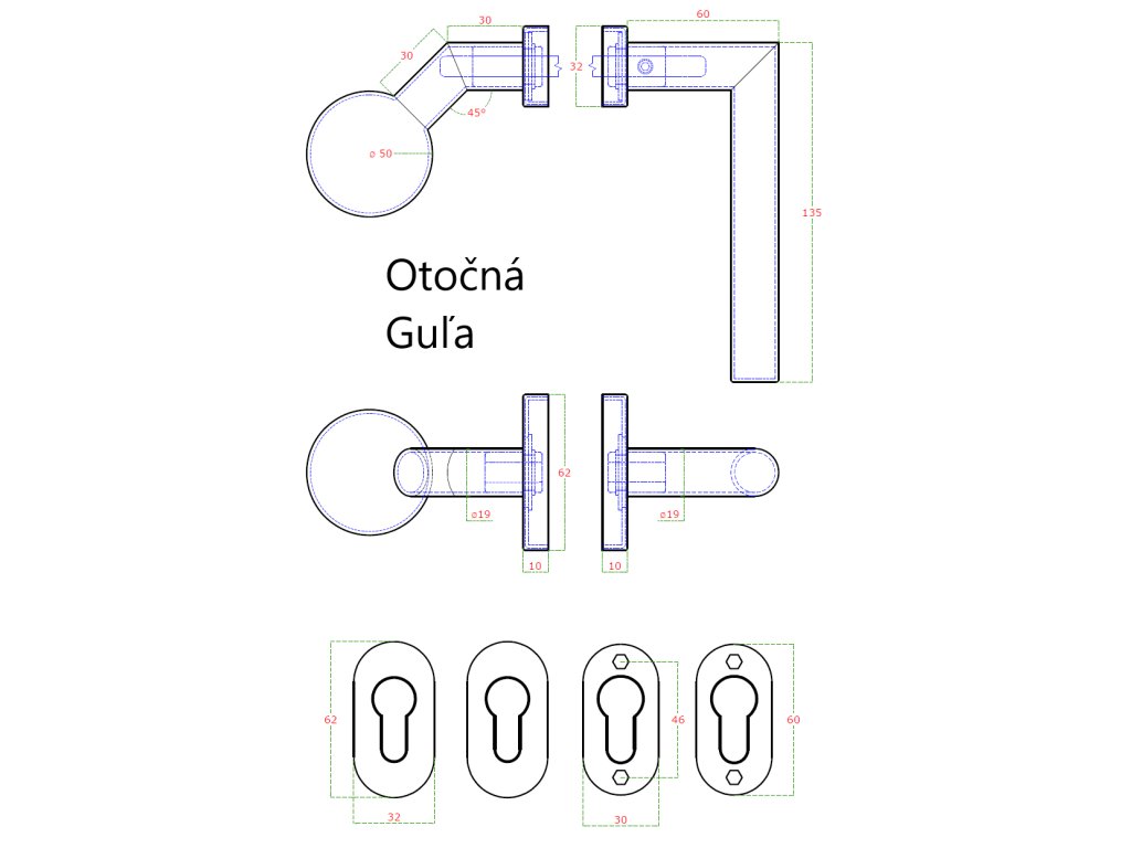 Kľučka (L) + Guľa (otočná), vrátane rozety, brúsená AISI 304
