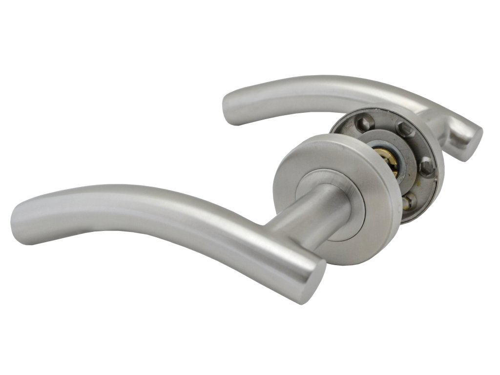 kľučka nerezová (pár) bez dolnej rozety, balenie: 2ks kľučka + príslušenstvo k montáži, brúsená nerez K320 /AISI304, spodná časť rozety pozink