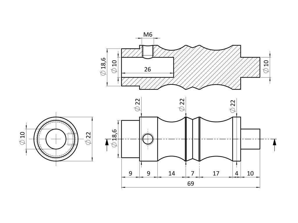 Cylinder kľučky so zaisťovacou skrutkou M6, na hriadeľ 8x8, priemer osadenia ø 18,5mm, bez povrchovej úpravy