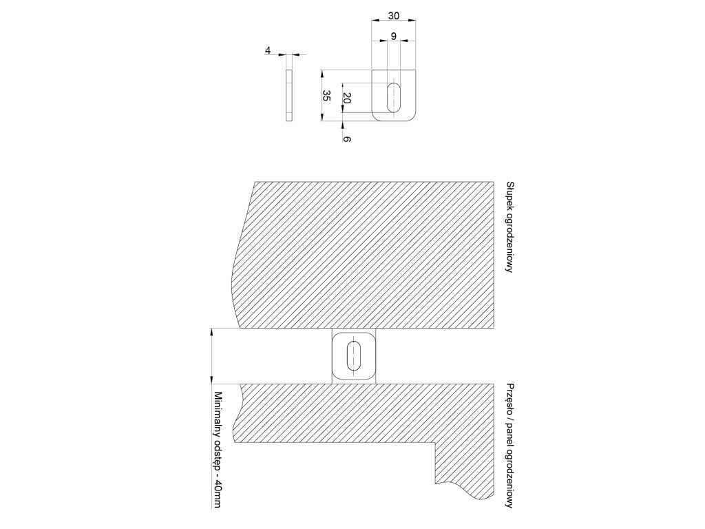 Naváracia kotva pre plotové/plechové výplne 35x30x4 mm, otvor 20x9mm, bez povrchovej úpravy