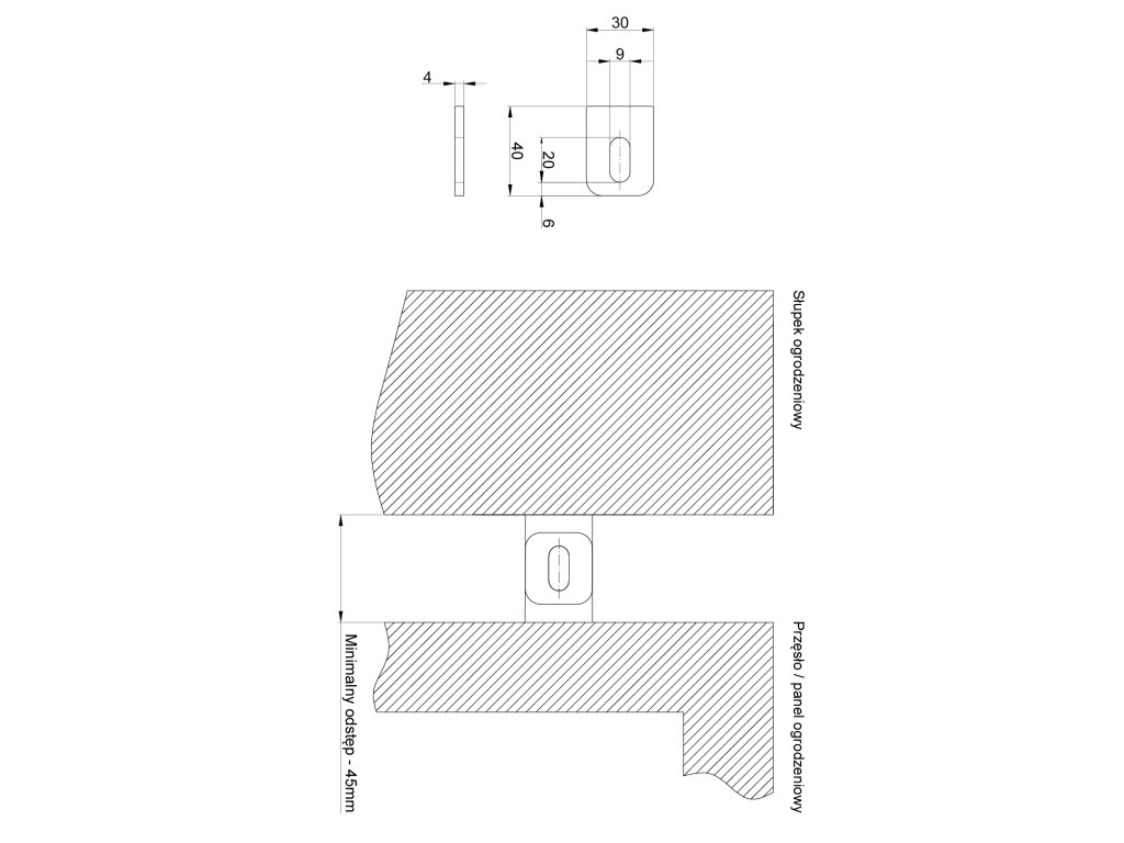 Naváracia kotva pre plotové/plechové výplne 40x30x4 mm, otvor 20x9mm, bez povrchovej úpravy