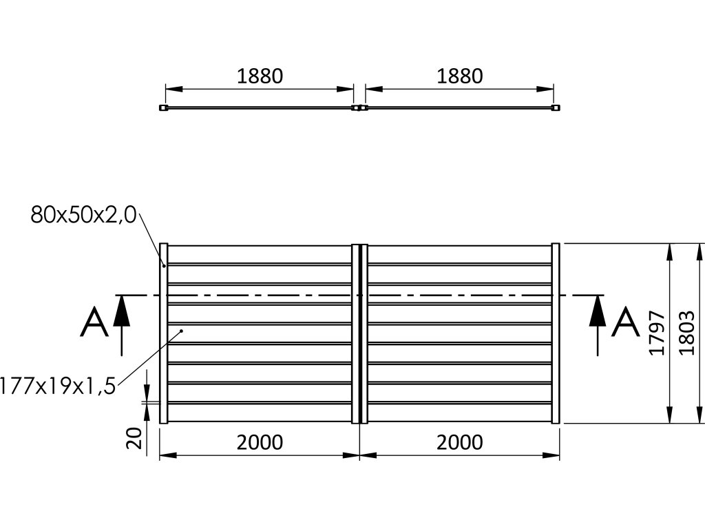 - Celková šírka brány: 4000 mm (možnosť skrátenia)
