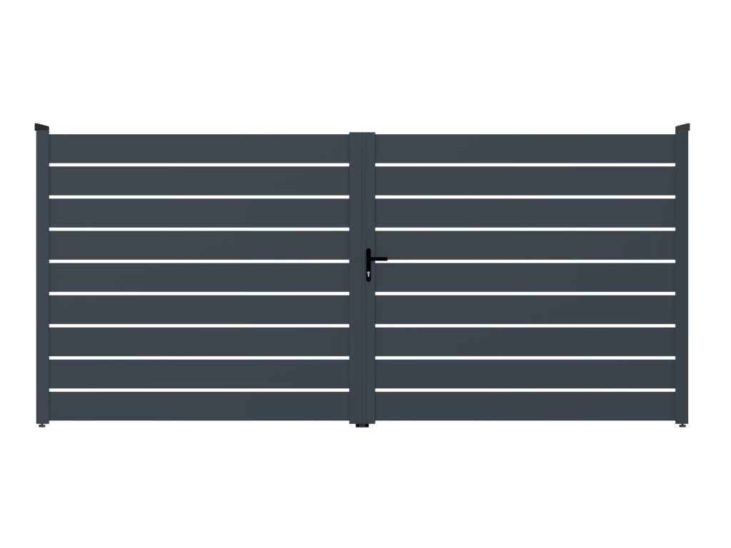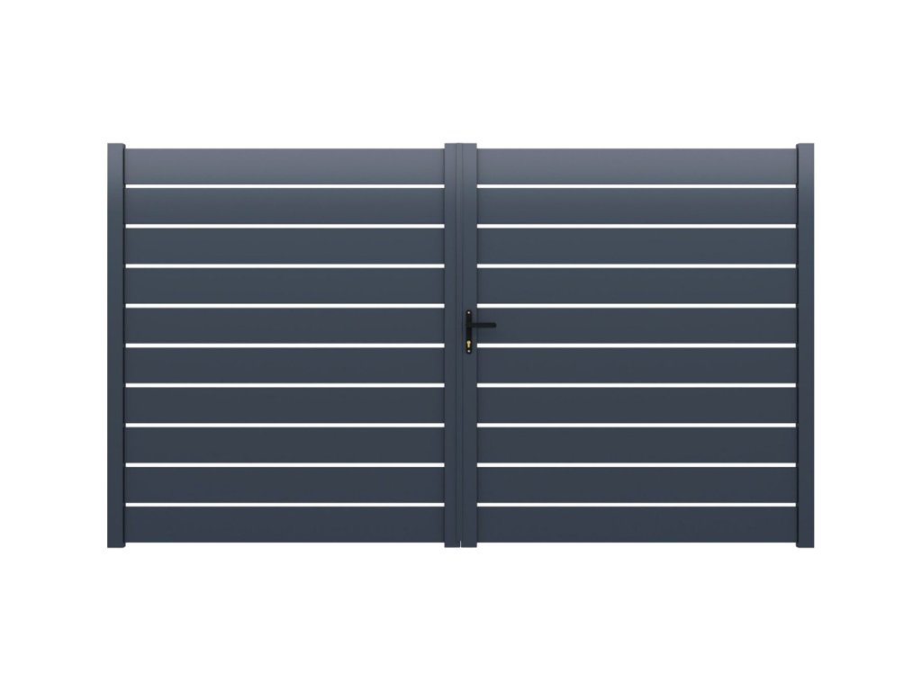 Moderná hliníková krídlová brána vhodná pre rodinné domy, bytové komplexy, firemné aj priemyselné areály.Konštrukcia brány je vyrobená z kvalitnej hliníkovej zliatiny 6063-T5, ktorá je bežne používanáv exteriérových bránových a plotových systémoch pre svoju pevnosť, tvarovú stabilitu a vysokú odolnosť voči korózii.