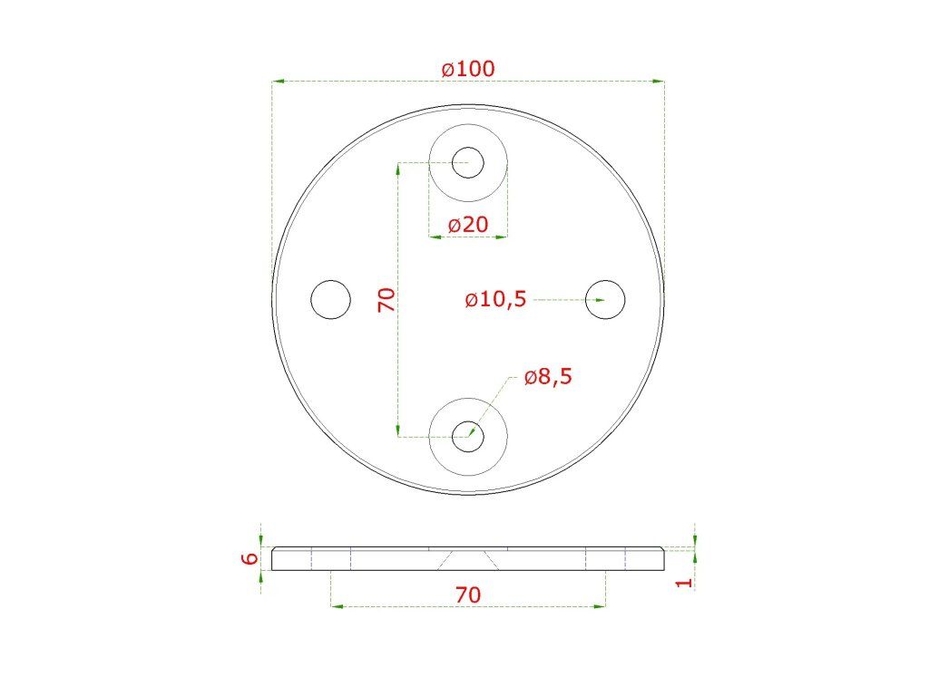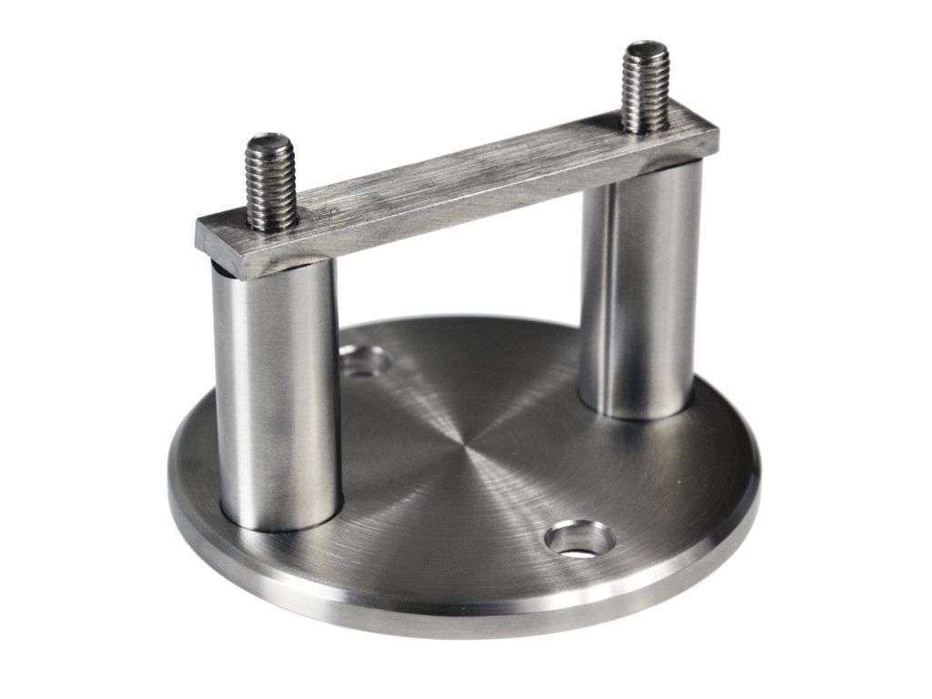 úchyt na bočné kotvenie stĺpu ø 42.4mm, (kotviaca platňa ø 100 /8.8mm), brúsená nerez K320 /AISI304
