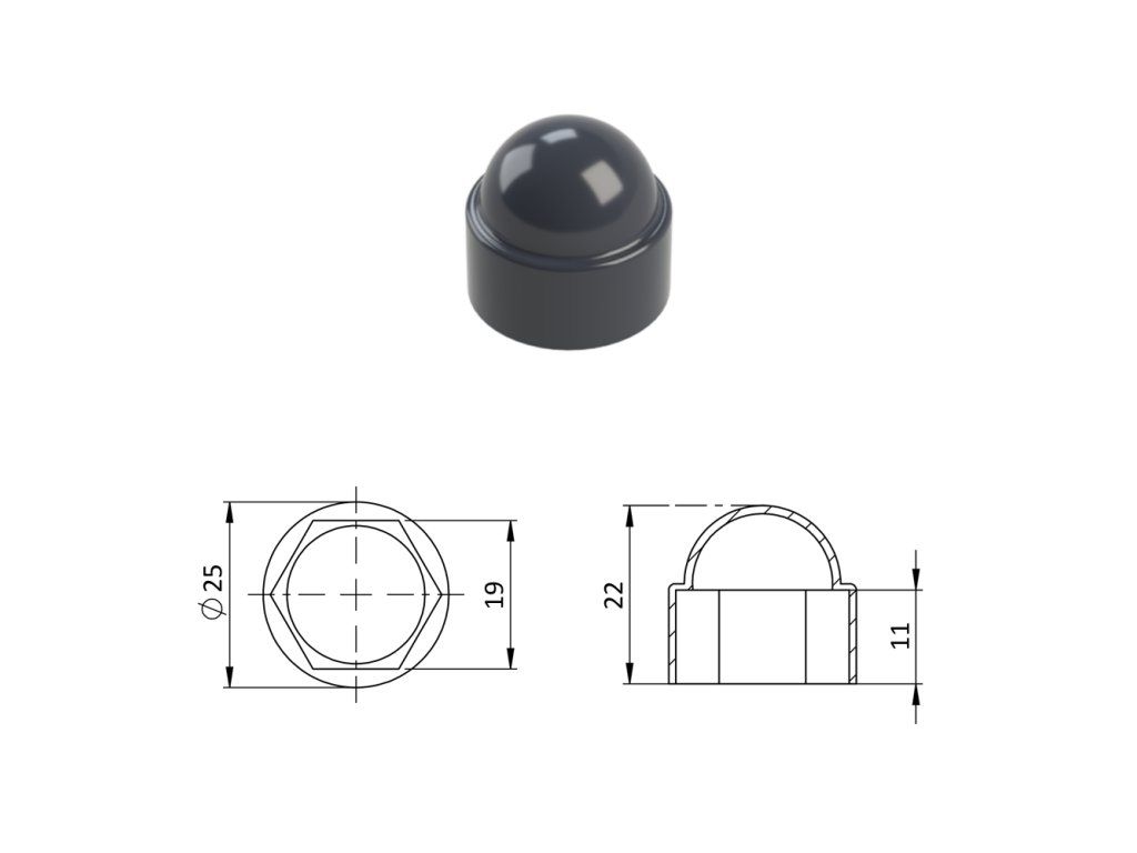 Krytka plastová na matice a skrutky M12, antracit