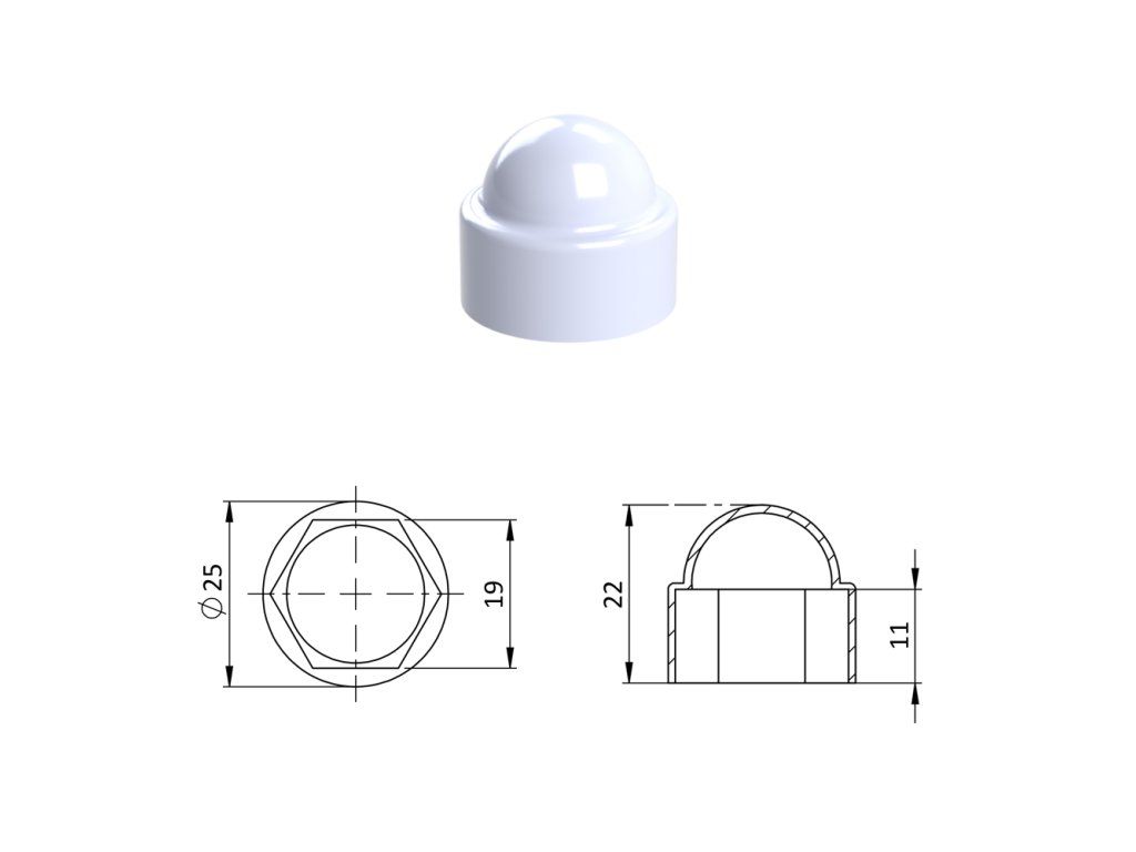 Krytka plastová na matice a skrutky M12, biela