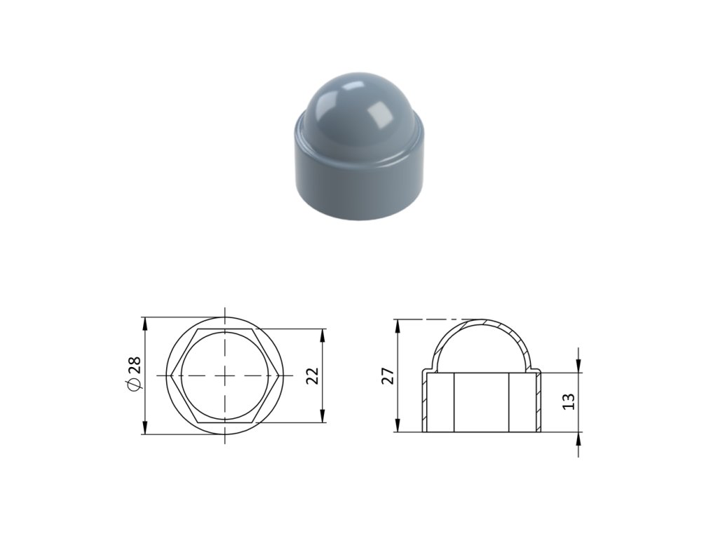 Krytka plastová na matice a skrutky M14, sivá