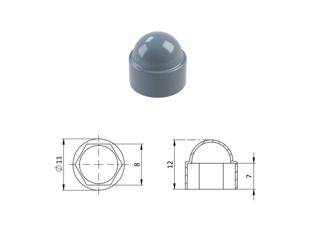 Krytka plastová na matice a skrutky M5, sivá
