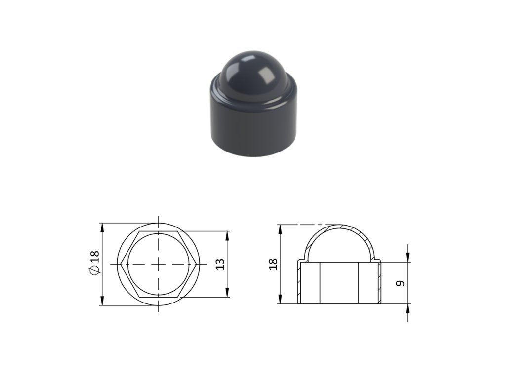 Krytka plastová na matice a skrutky M8, antracit