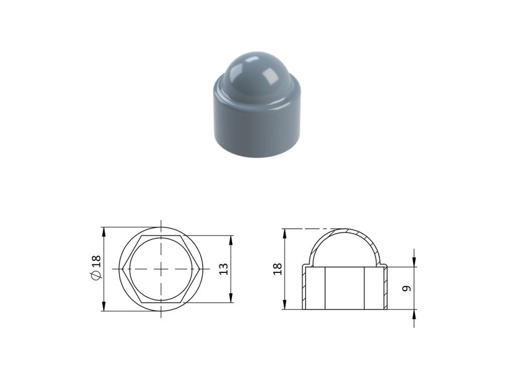Krytka plastová na matice a skrutky M8, sivá