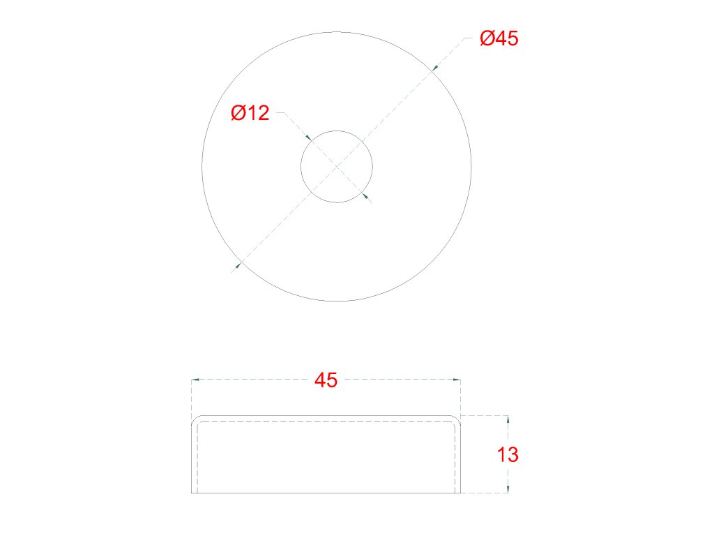 Kryt ø 45 mm na trubku ø 12 mm, leštená nerez AISI 304