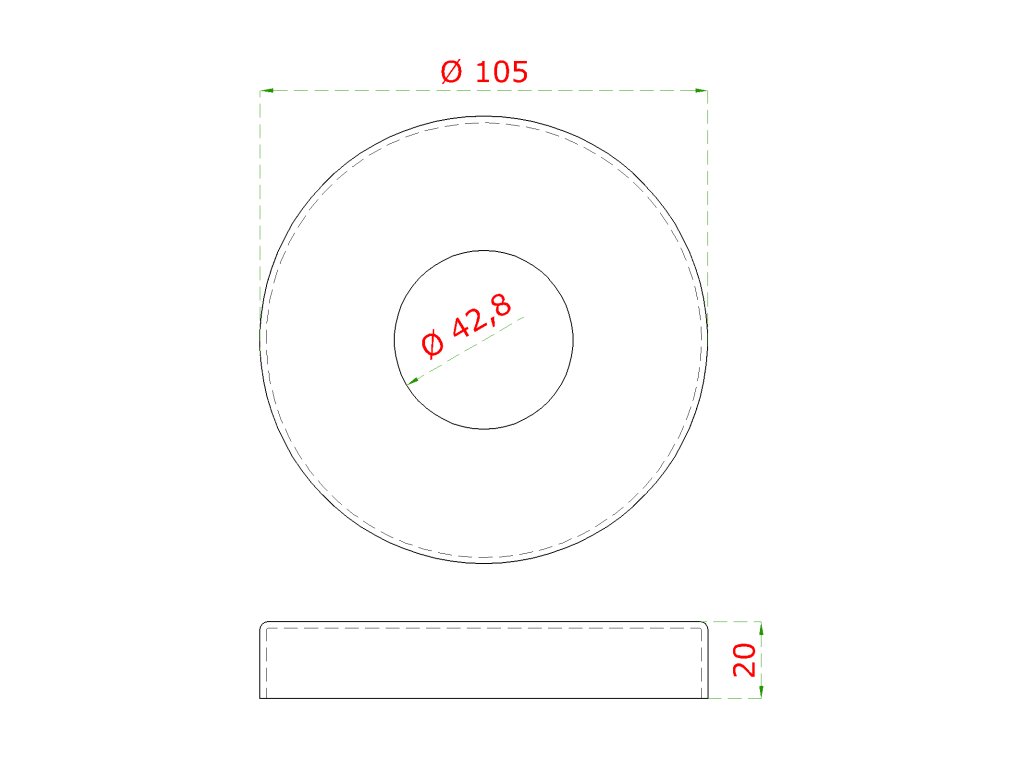 Kryt príruby ø 105 mm, otvor ø 43 mm, leštená nerez AISI 304
