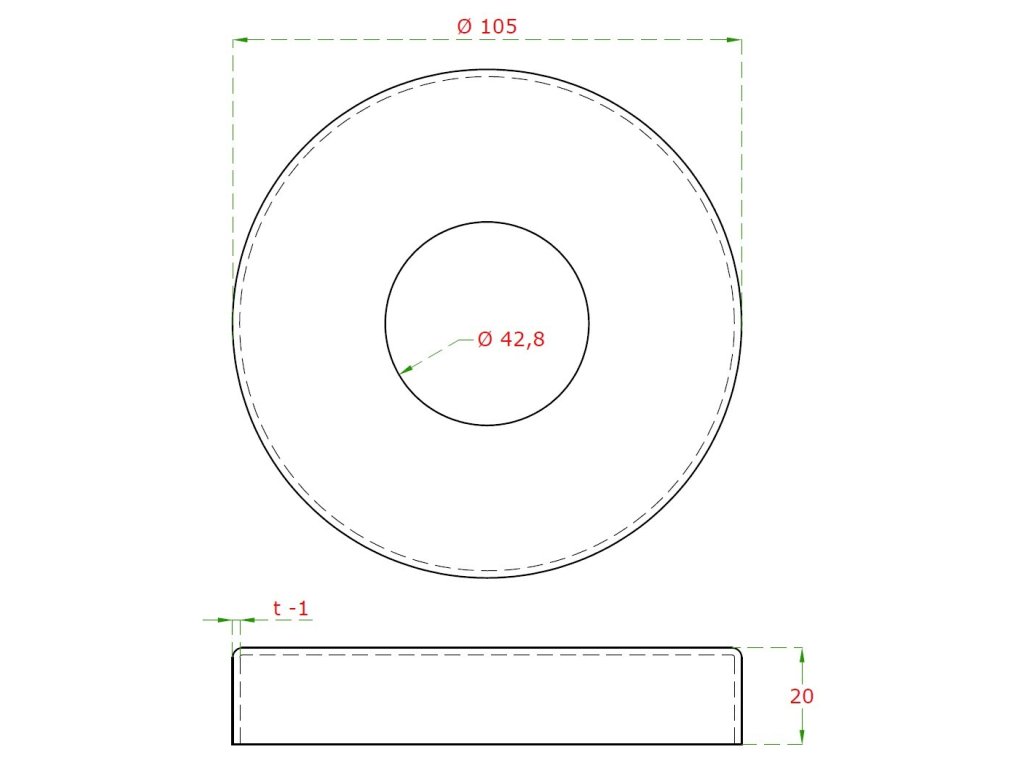 Kryt príruby (ø 105/20 mm) na trubku ø 42,4 mm (otvor ø 43 mm), brúsená nerez K320 /AISI 304