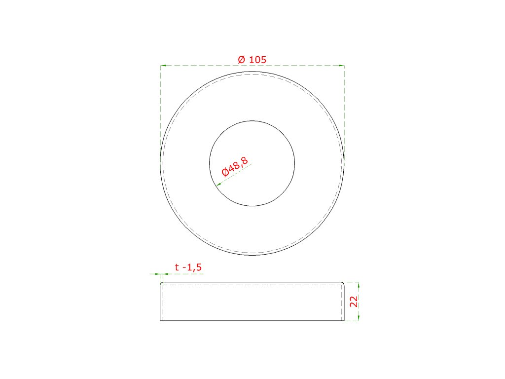 Kryt príruby (ø 105/22 mm) na trubku ø 48,3 mm, brúsená nerez K320 /AISI 304