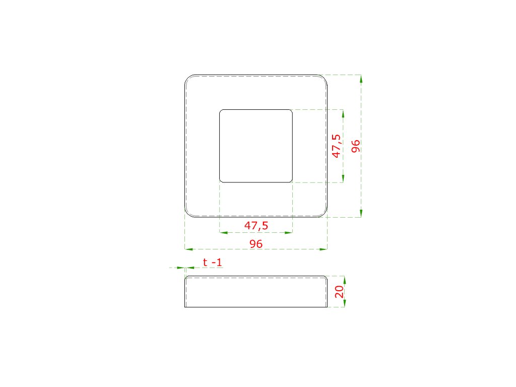 Kryt príruby (96 x 96mm), otvor: 47,5 x 47,5 mm, brúsená nerez K320 /AISI 304