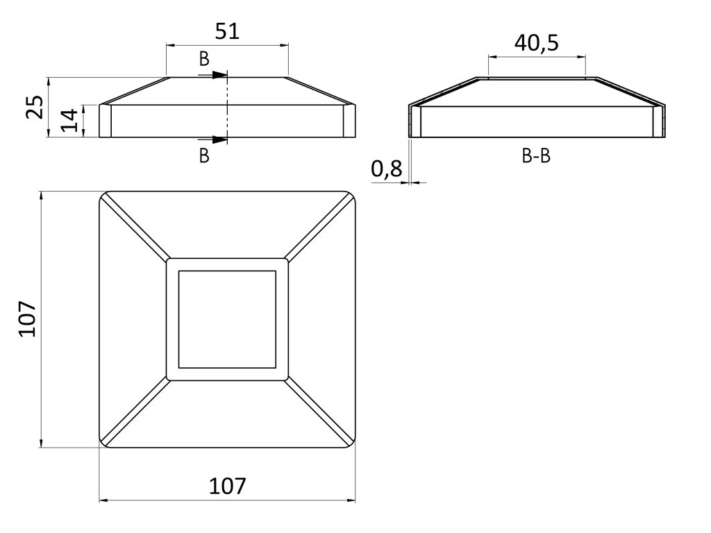 Kryt spodnej príruby 107 x 107 mm, brúsená nerez AISI 304