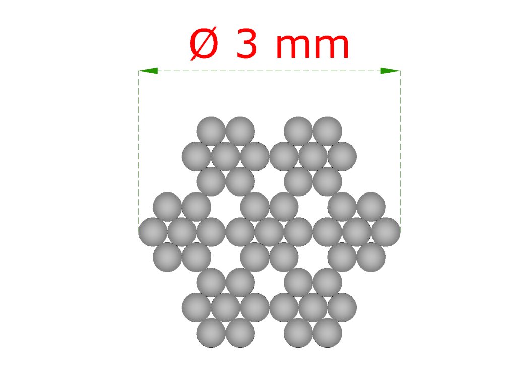 Oceľové lanko ø 3 mm (7x7 dr.) galvanicky pozinkované
