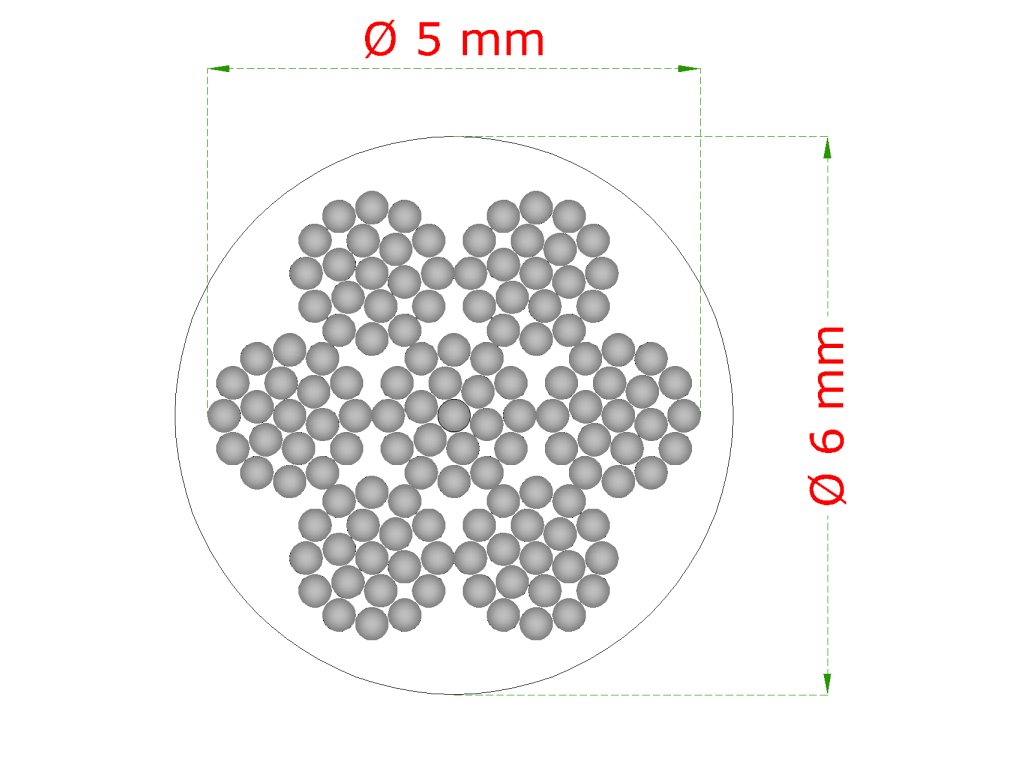 Oceľové lanko ø5mm (7x19 dr.) /galvanicky pozinkované s PVC obalom - celková hrúbka ø6mm