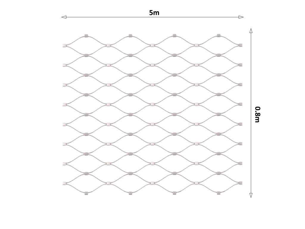 Nerezová lanková sieť, 0.8mx5m (šxd), oko 50x50mm, hrúbka lanka 2mm, AISI316 (V nerozloženom stave má sieť 5.82m)