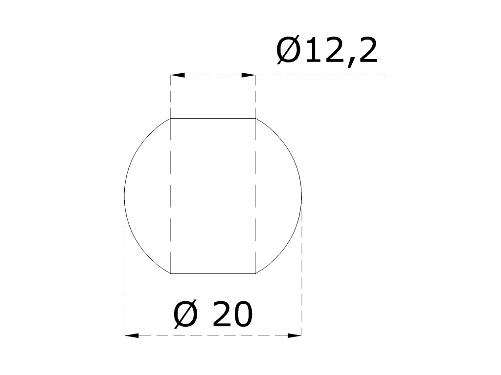 guľa priechodná ø 20mm na trubku ø 12mm, otvor ø 12.2mm, brúsená nerez K320 /AISI304