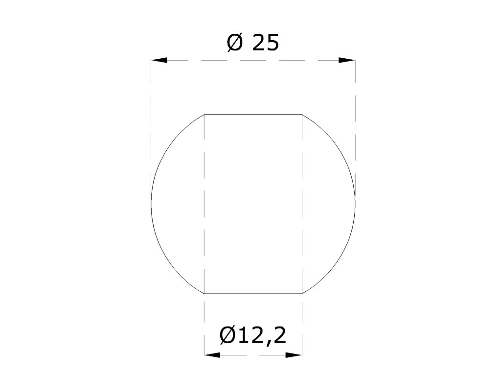 Guľa priechodná ø 25 mm na trubku ø 12 mm, brúsená AISI 304